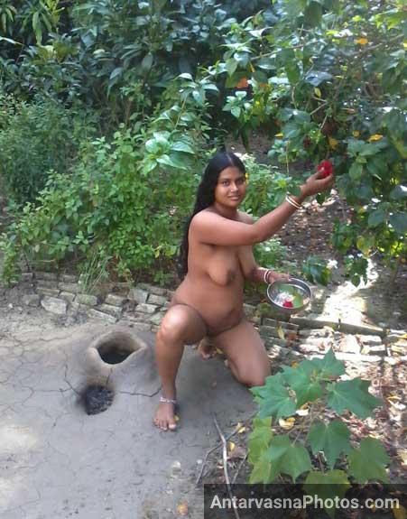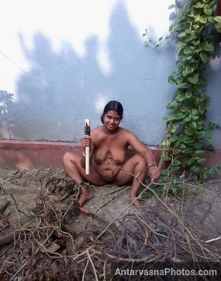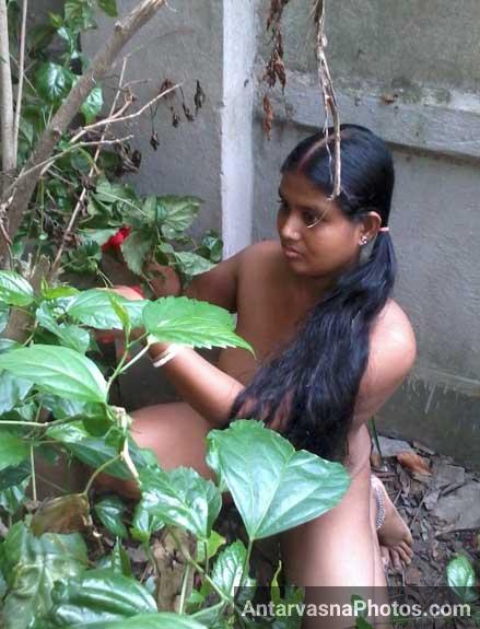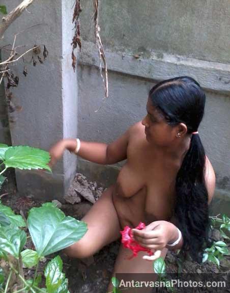 Dosto, today in these photos of a nude woman, you can see Ratna aunty's big breasts and desi vagina. She was working naked in the garden. And seeing her nude, Nitin's penis was even more excited. Inside the garden, he had sex with this sexy aunty!